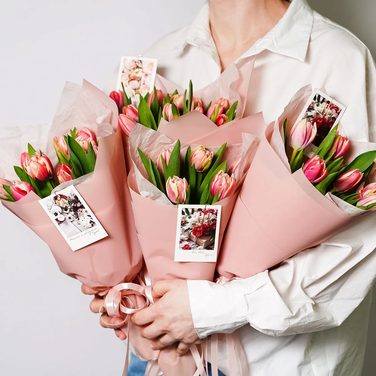 Цветы в составе Пленка матовая 320 руб, Тюльпан, Бумага Тишью, Расходный материал, Лента текстиль 100 руб, ✓ Все цветы в наличии