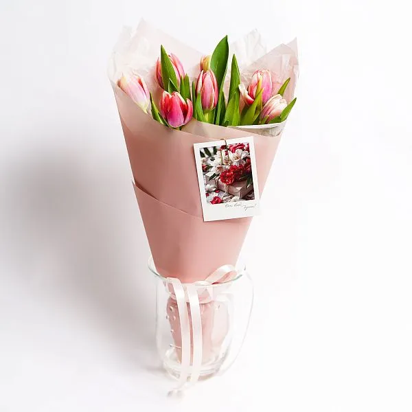 • Букет № 565 с розовыми тюльпанами  — фото 12