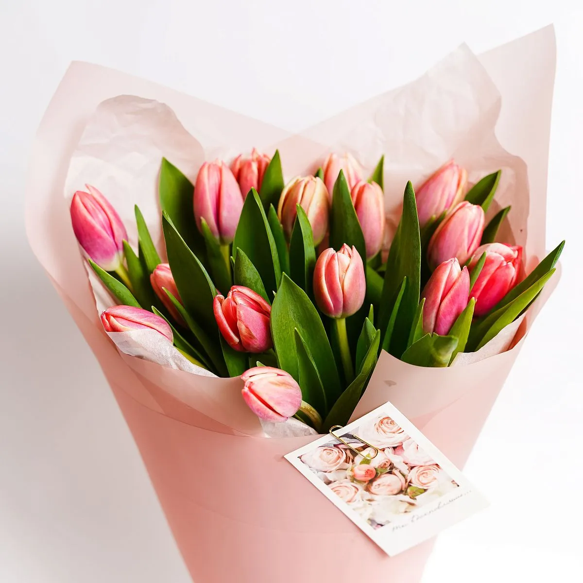 • Букет № 567 из 15 розовых тюльпанов — фото 9