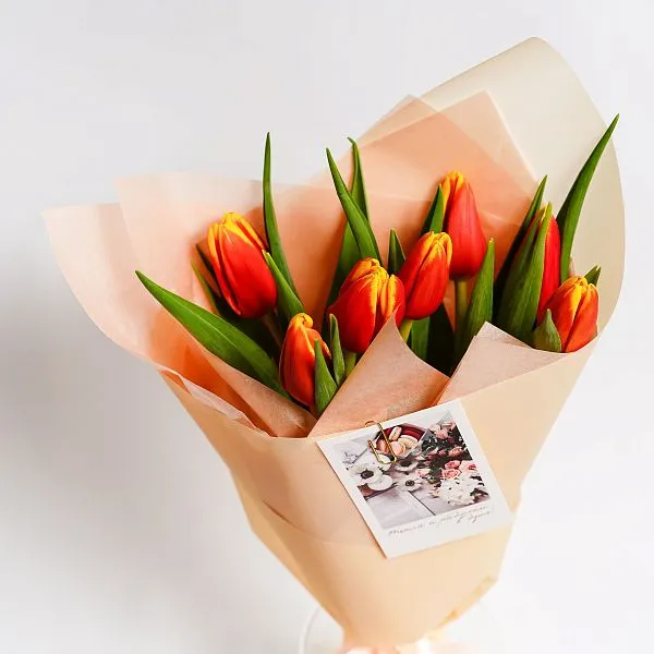 • Букет № 572 из 7 оранжевых тюльпанов  — фото 13