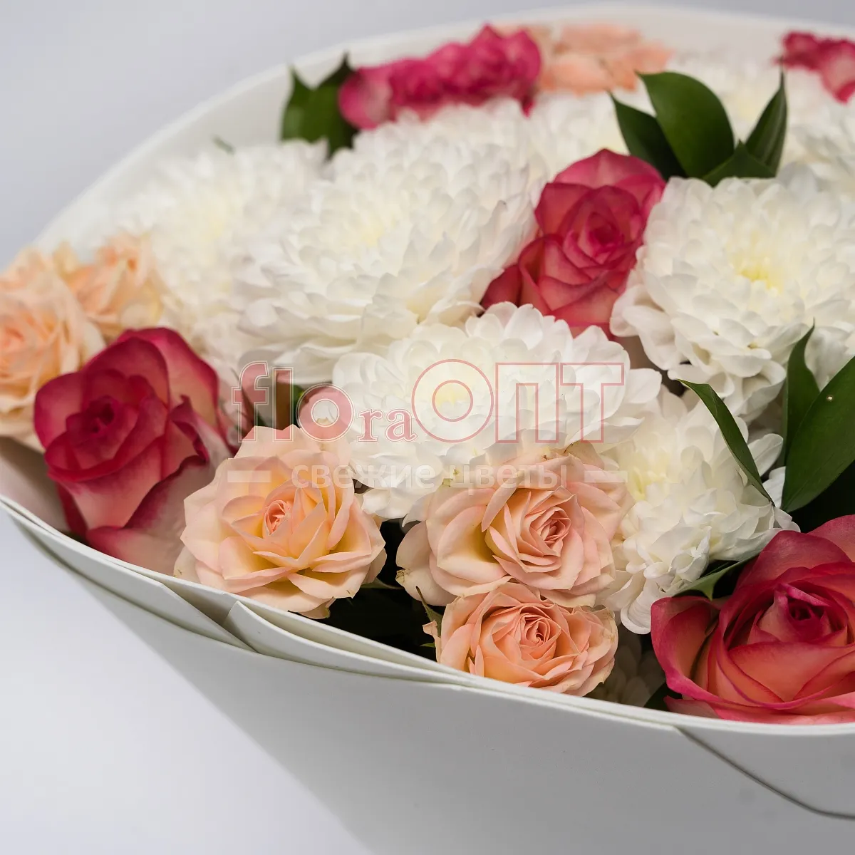 • Букет № 513 с белой хризантемой и розой  — фото 16