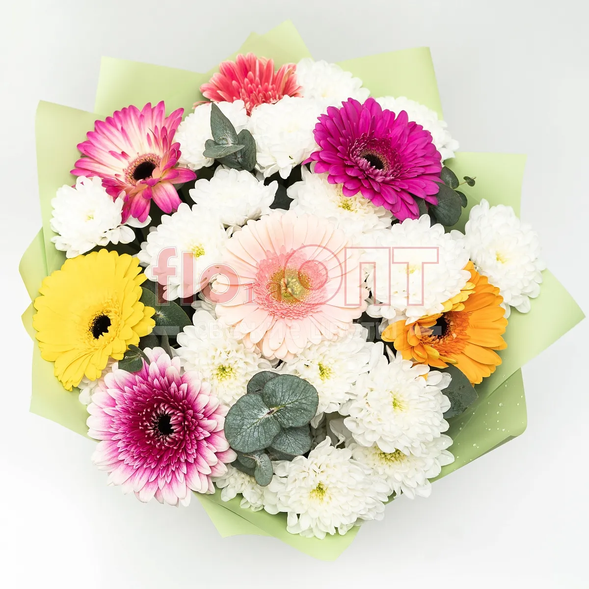 Букет № 523 с разноцветными герберами и хризантемой