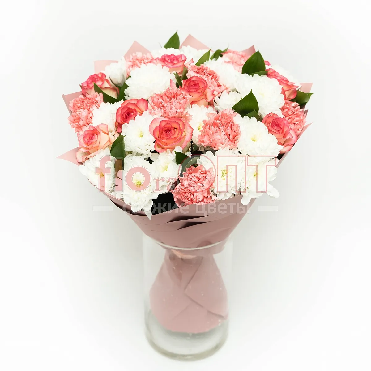 Цветы в составе Гвоздика Одиночная, Лента пластиковая 30 руб, Пленка 250,руб, Рускус Голландия , Роза Россия 50 см, Хризантема Кустовая , Расходный материал, ✓ Все цветы в наличии