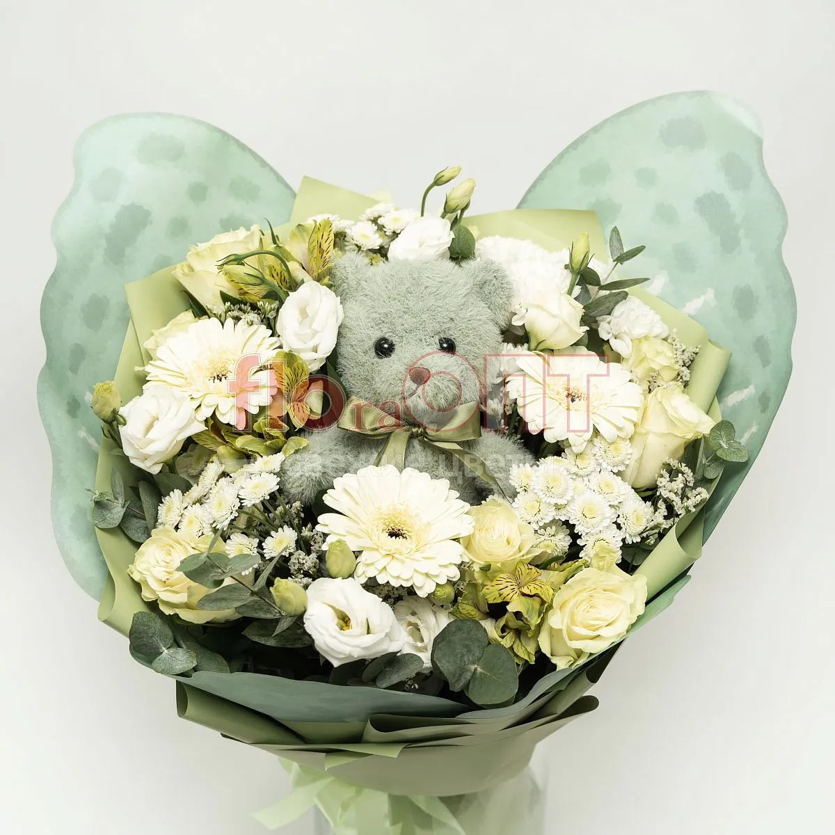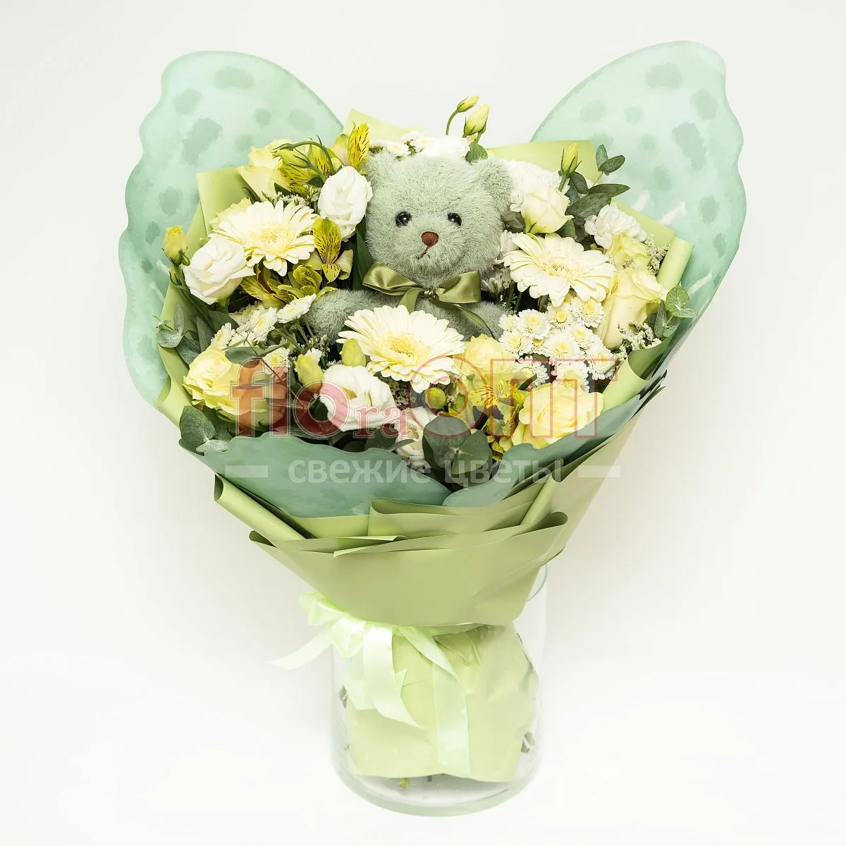 Не все цветы есть в наличии. Но можем создать букет похожего дизайна из других цветов!
