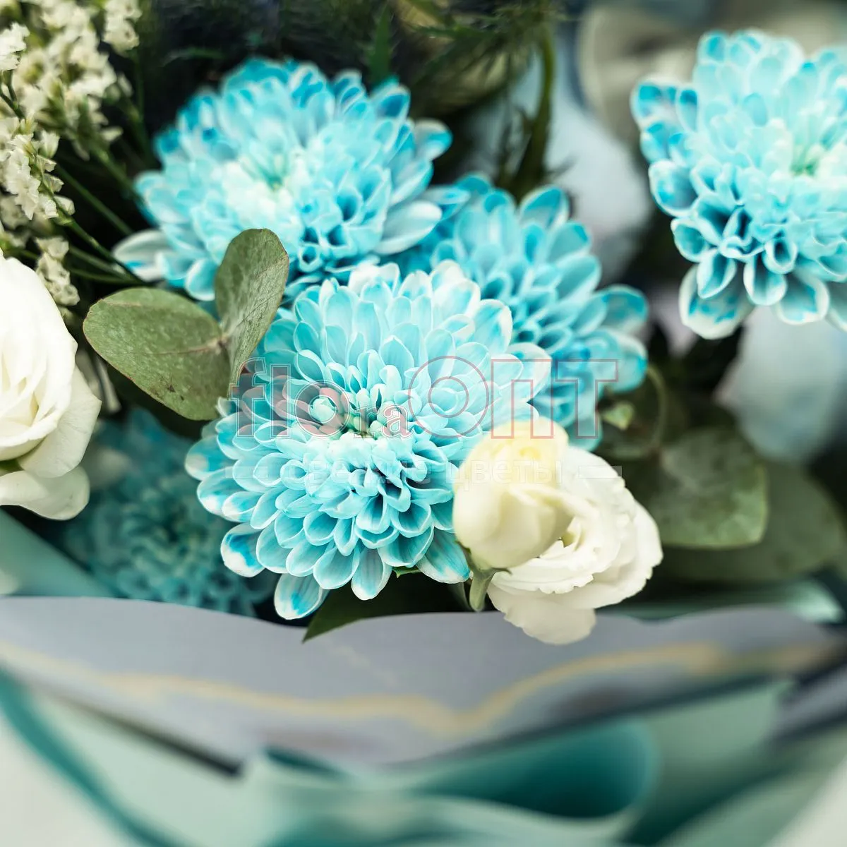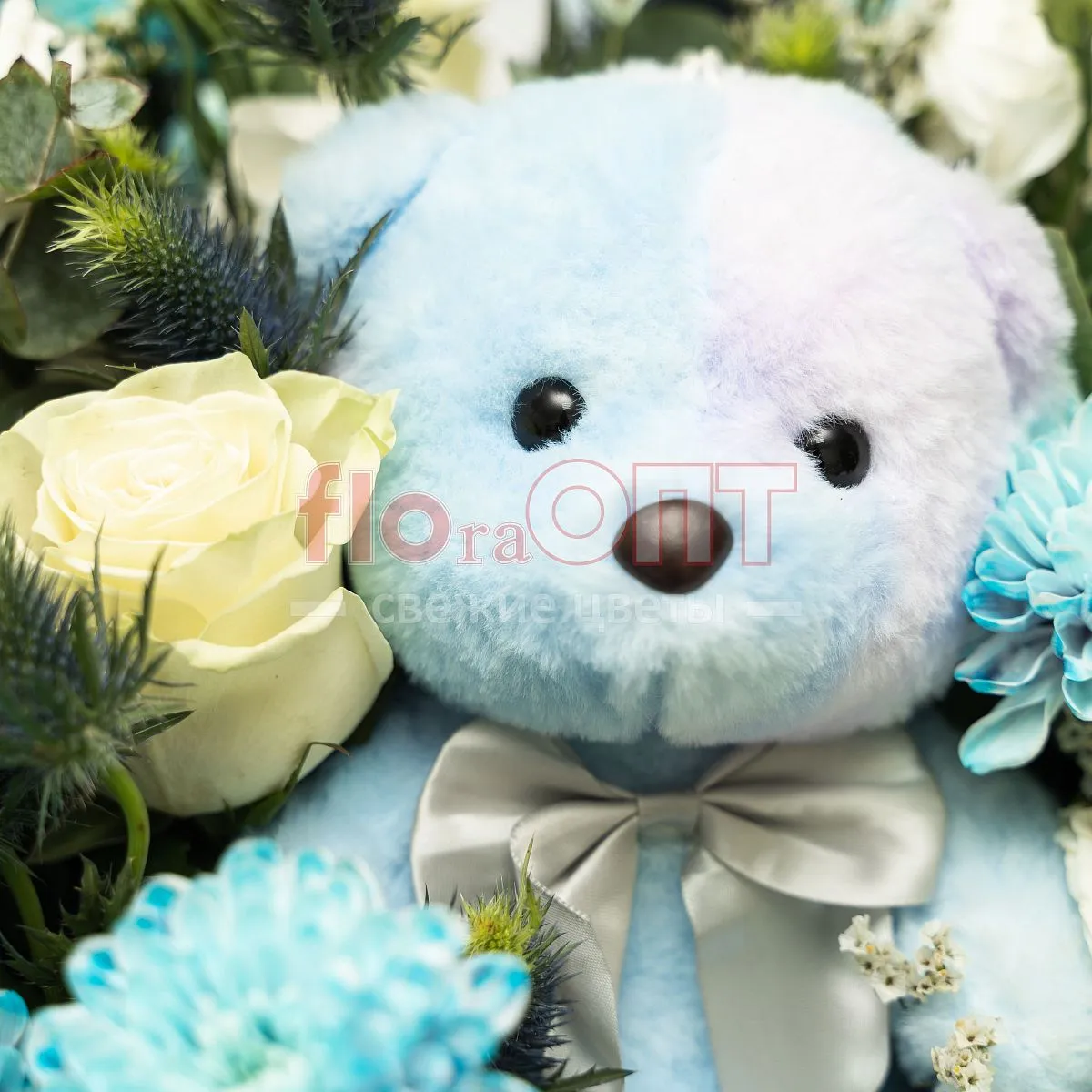 Букет № 542 с крашеной хризантемой и игрушкой — фото 7