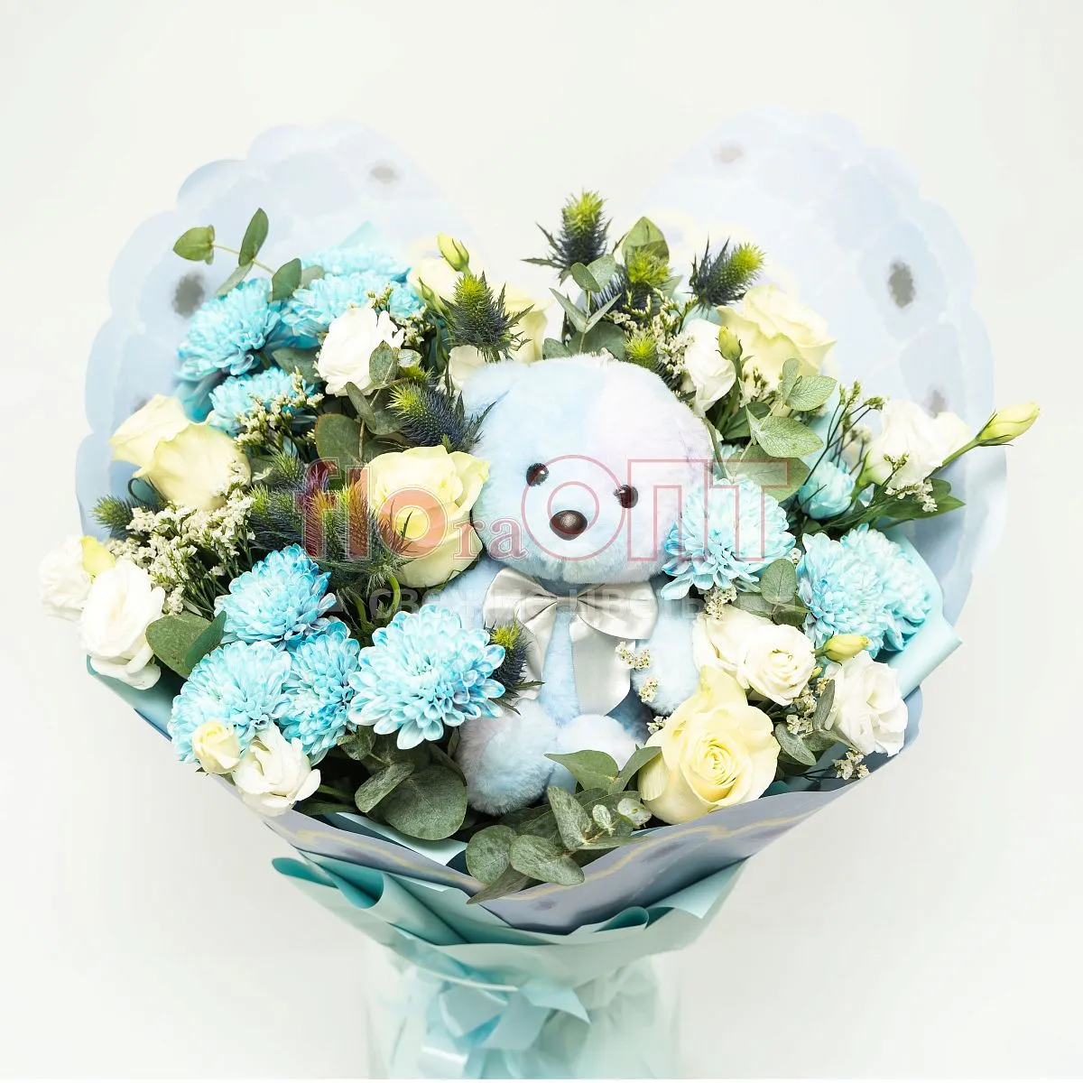 Букет № 542 с крашеной хризантемой и игрушкой — фото 8