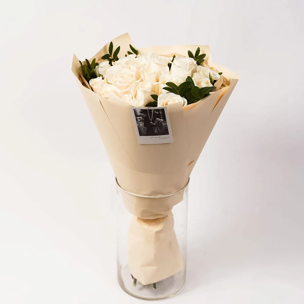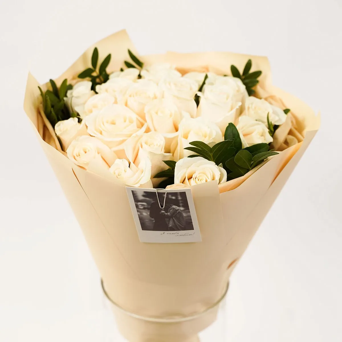 Вместе с цветами адресат получит короткую инструкцию по подрезке и пакетик с кризалом — средством для продления жизни букета.