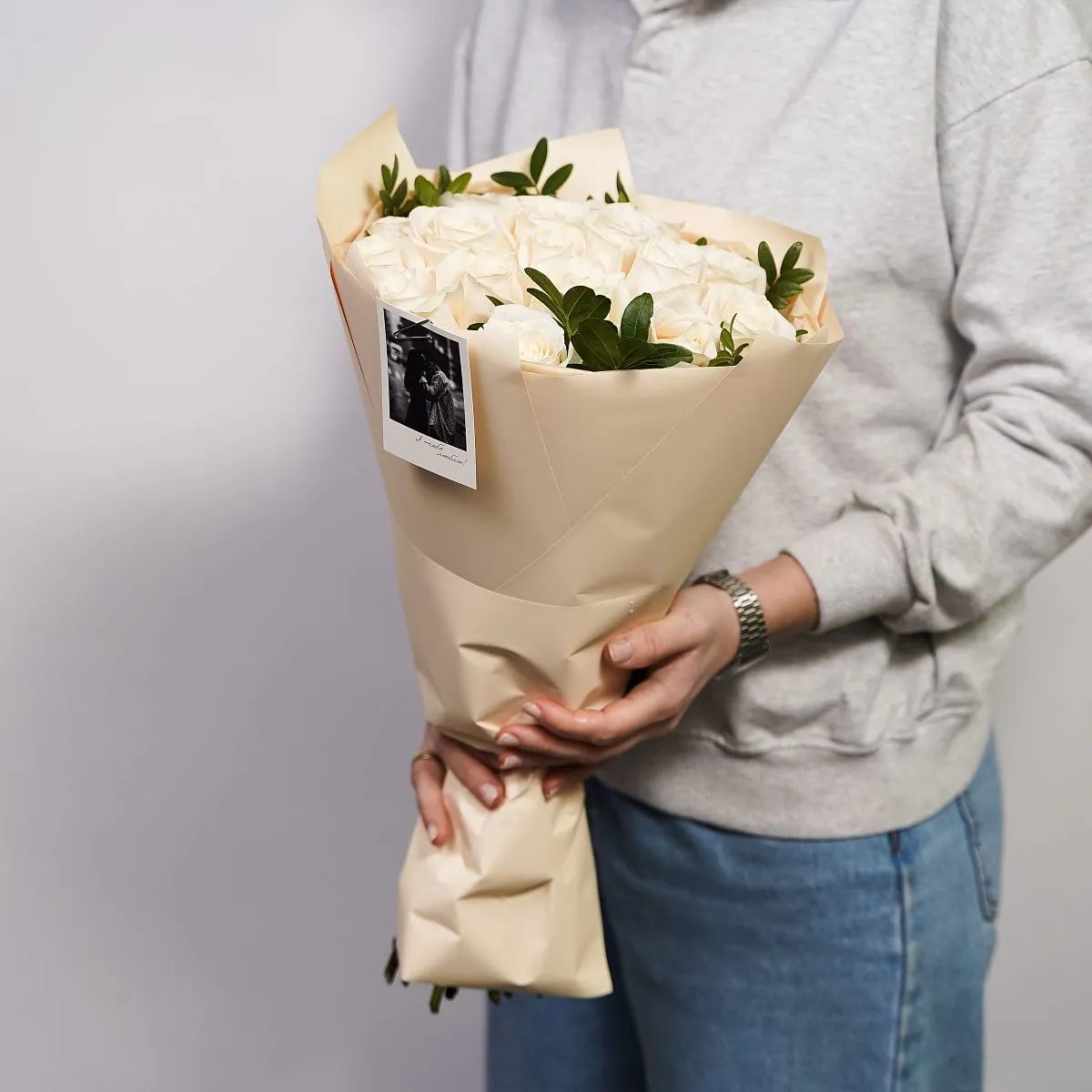 3. Перед доставкой пришлём фотоотчёт — вы убедитесь, что букет отвечает вашим пожеланиям.