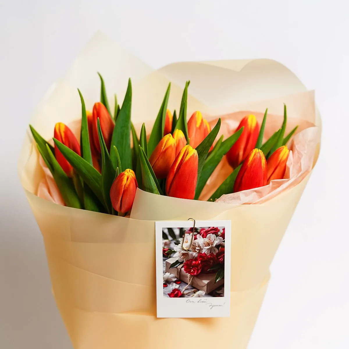 • Букет № 575 из 15 оранжевых тюльпанов — фото 10