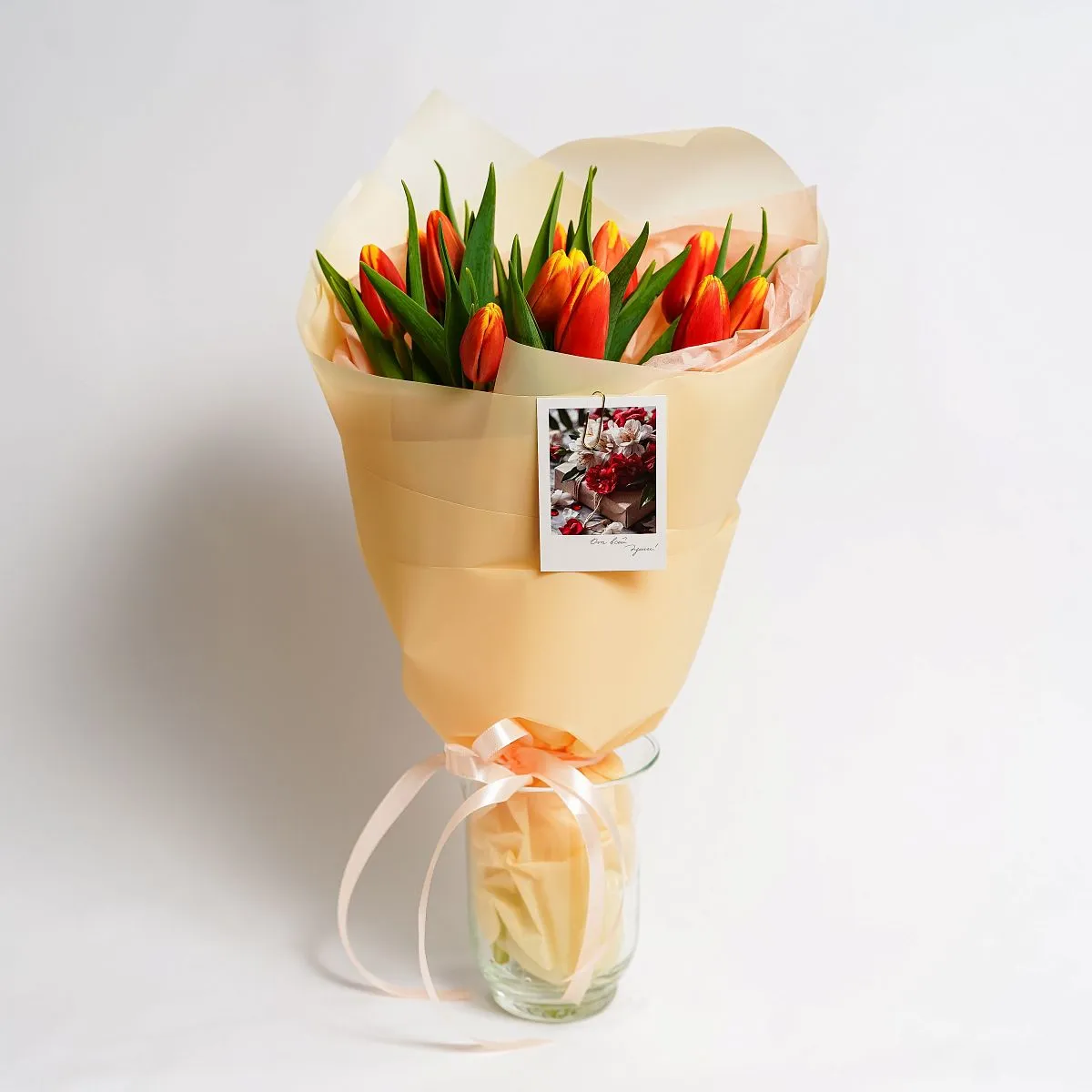 • Букет № 575 из 15 оранжевых тюльпанов — фото 8