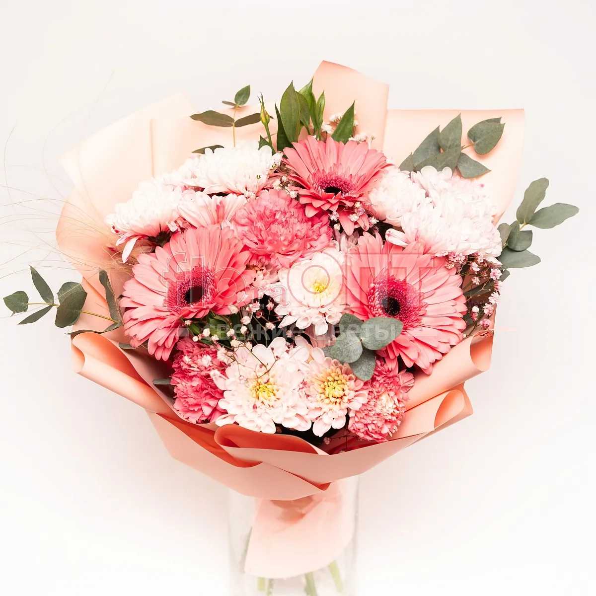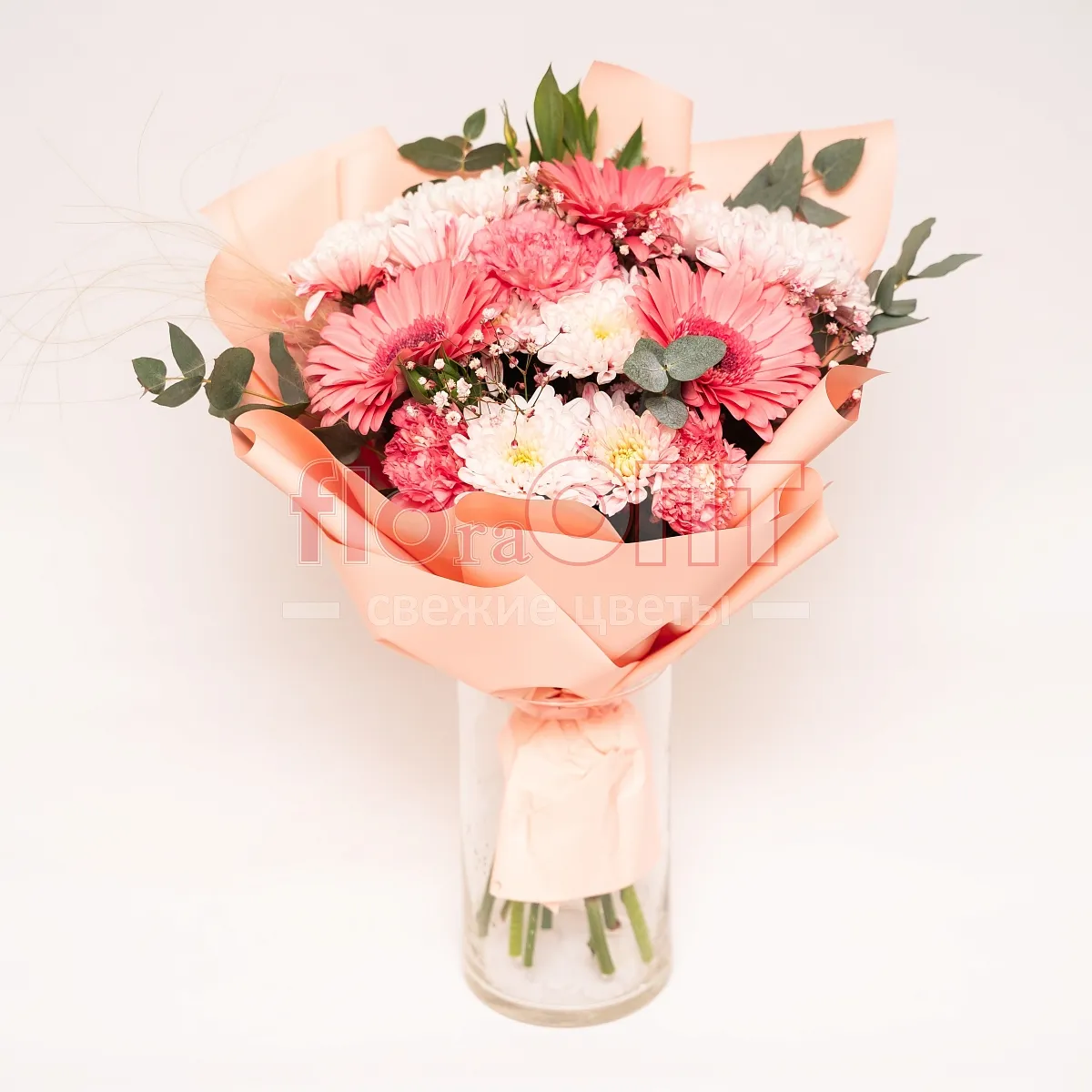 Возможна незначительная замена элементов композиции. Если какого-то цветка или оттенка, как на фотографии, не окажется в салонах, то флорист предложит вам варианты и пришлёт фото на выбор в WhasApp.