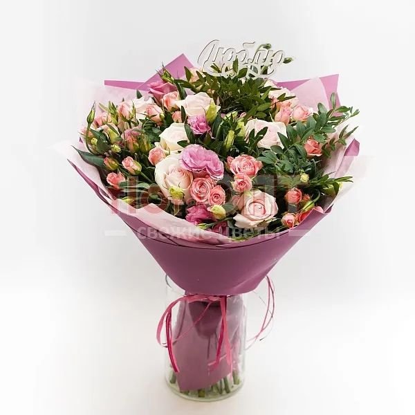 Возможна незначительная замена элементов композиции. Если какого-то цветка или оттенка, как на фотографии, не окажется в салонах, то флорист предложит вам варианты и пришлёт фото на выбор в WhasApp.