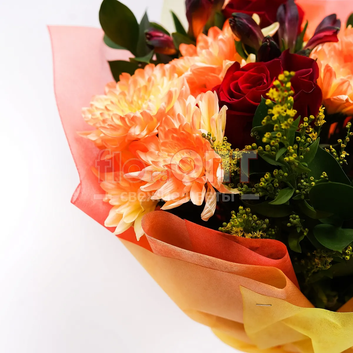 Букет № 395 с крашеной хризантемой и розами