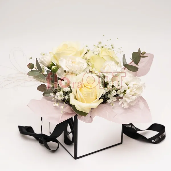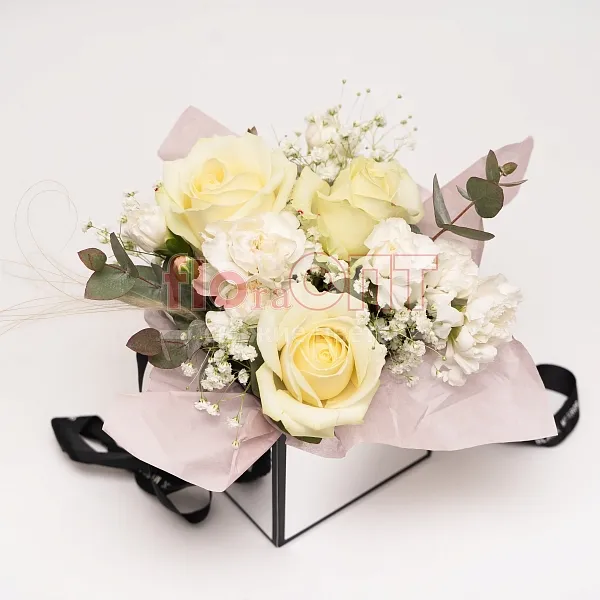 Возможна незначительная замена элементов композиции. Если какого-то цветка или оттенка, как на фотографии, не окажется в салонах, то флорист предложит вам варианты и пришлёт фото на выбор в WhasApp.