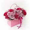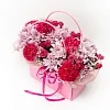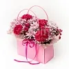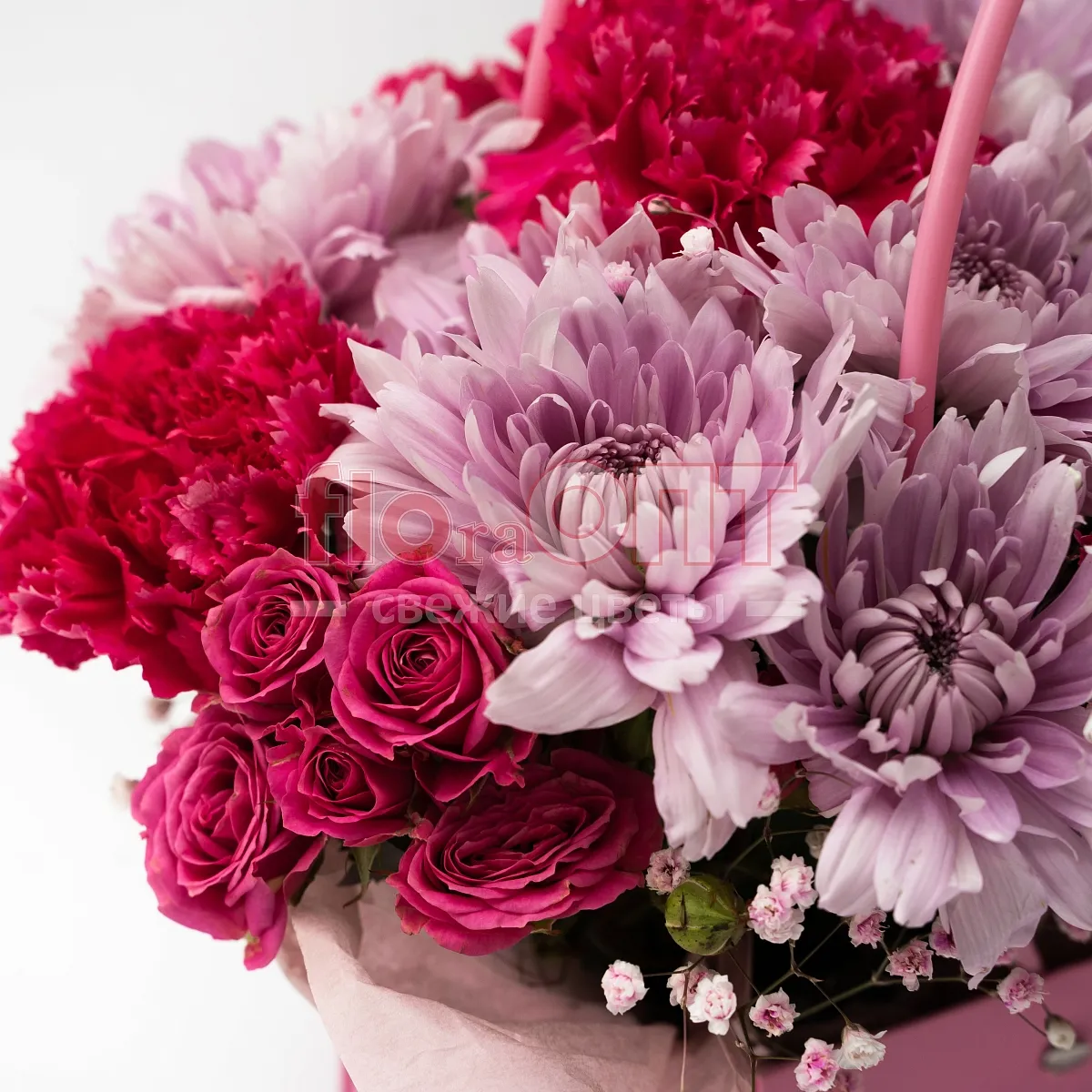 Цветы в составе Гвоздика Одиночная, Лента текстиль 80 руб, Оазис , Роза Китай кустовая 50 см, Декор 350 руб, Гипсофила Крашеная, Хризантема Кустовая , Бумага Тишью, Расходный материал, ✓ Все цветы в наличии