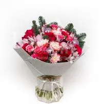 Композиция № 65 с кустовой красной розой