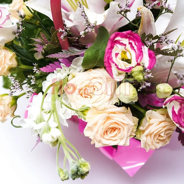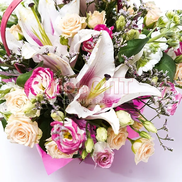 Возможна незначительная замена элементов композиции. Если какого-то цветка или оттенка, как на фотографии, не окажется в салонах, то флорист предложит вам варианты и пришлёт фото на выбор в WhasApp.