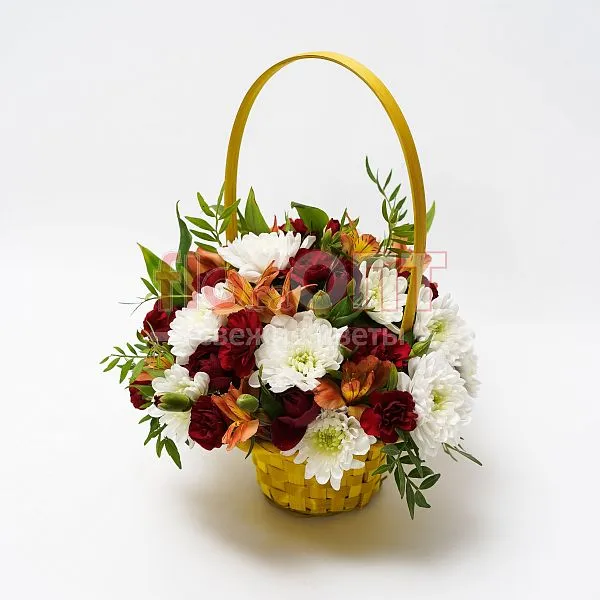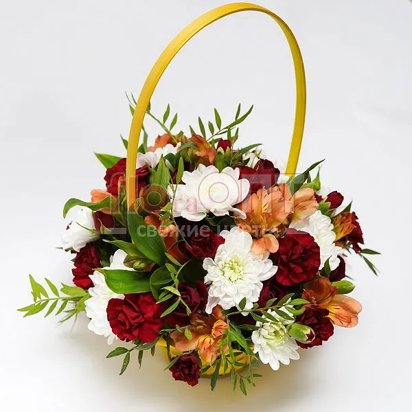 Цветы в составе Альстромерия, Гвоздика Кустовая, Оазис , Роза Китай кустовая 50 см, Хризантема Кустовая, Корзина 500 руб, Фисташка Пучок, ✓ Все цветы в наличии