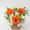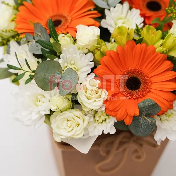 Цветы в составе Альстромерия, Гербера, Оазис , Роза Китай кустовая 40 см, Эвкалипт Де Люкс, Солидаго, Фисташка, Коробка 200 руб, Хризантема Кустовая , Бумага Тишью, Расходный материал, ✓ Все цветы в наличии