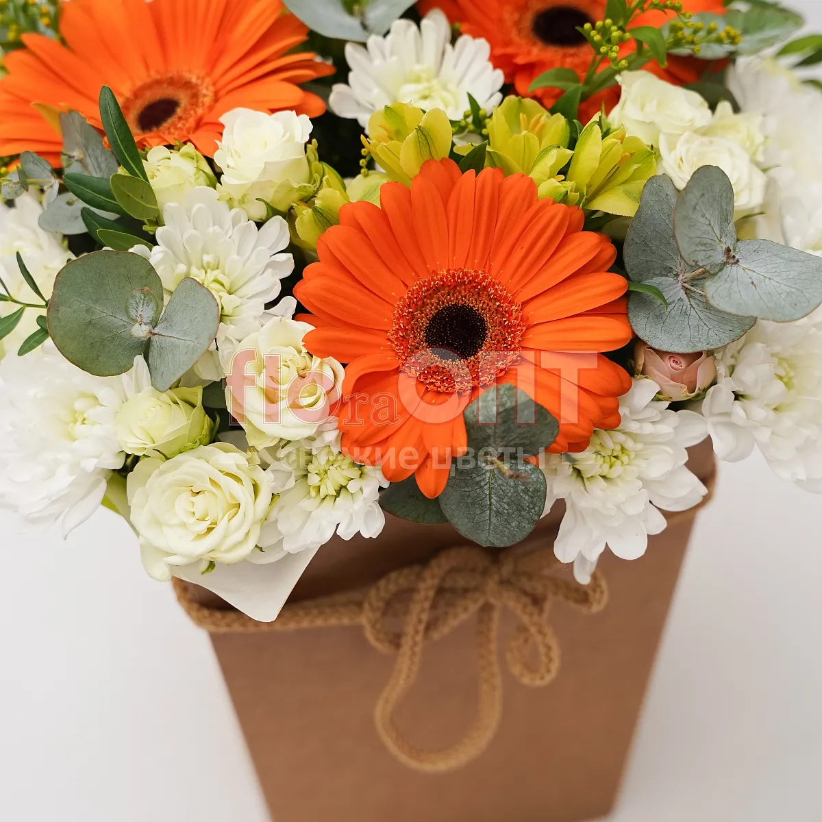 Возможна незначительная замена элементов композиции. Если какого-то цветка или оттенка, как на фотографии, не окажется в салонах, то флорист предложит вам варианты и пришлёт фото на выбор в WhasApp.