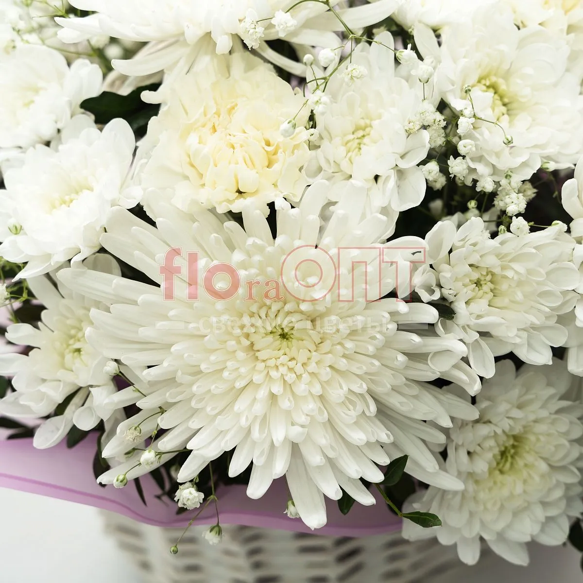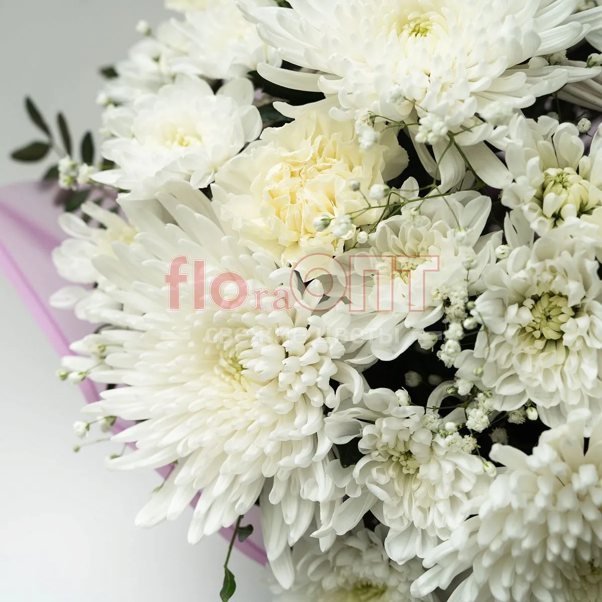 Композиция № 183 с белой хризантемой и кустовой гвоздикой  — фото 8