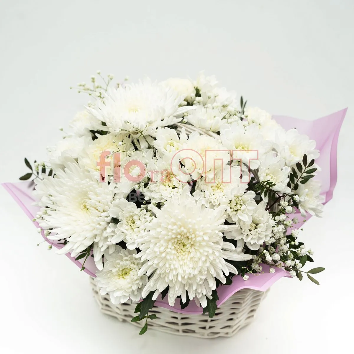 Композиция № 183 с белой хризантемой и кустовой гвоздикой  — фото 10