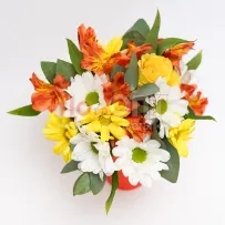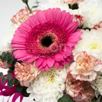 Цветочный стаканчик № 154 с гвоздикой и хризантемой