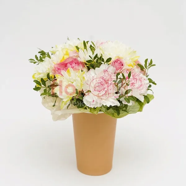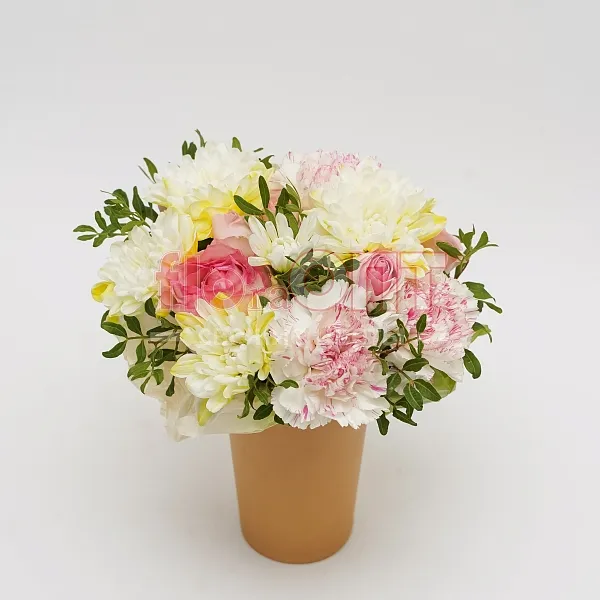 Цветочный стаканчик № 154 с гвоздикой и хризантемой