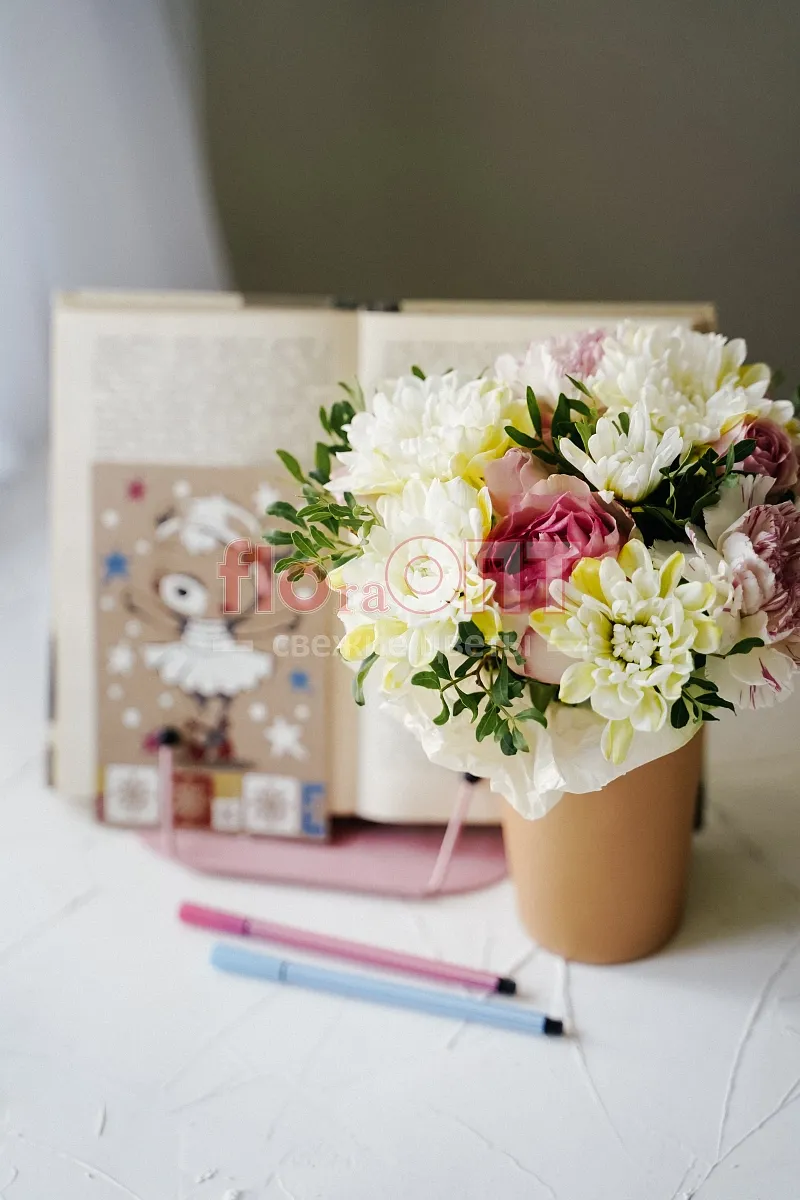 Возможна незначительная замена элементов композиции. Если какого-то цветка или оттенка, как на фотографии, не окажется в салонах, то флорист предложит вам варианты и пришлёт фото на выбор в WhasApp.