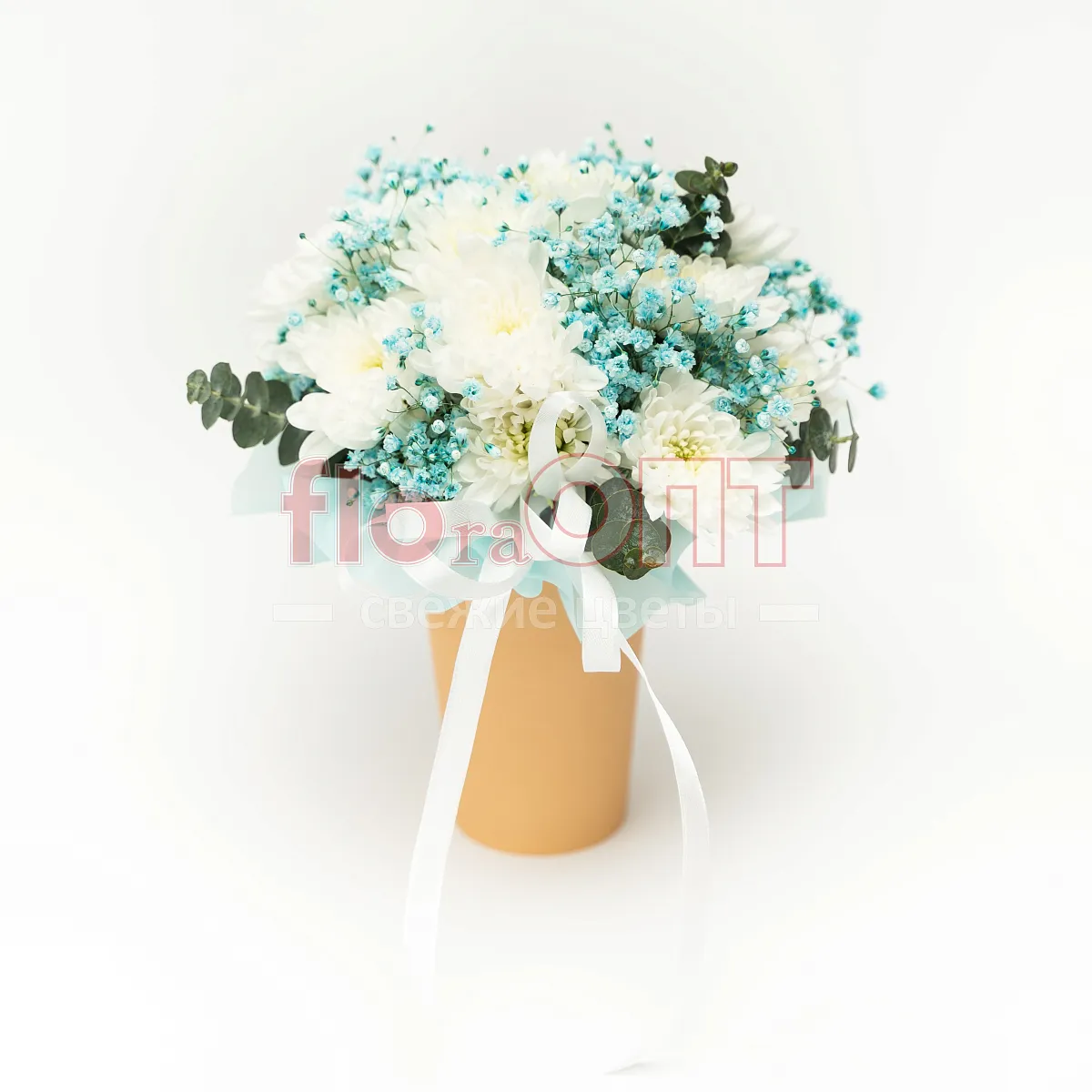 Цветочный стаканчик № 165 с хризантемой и гипсофилой