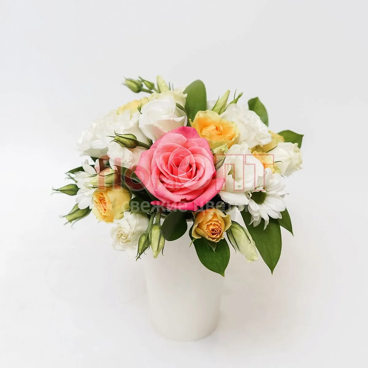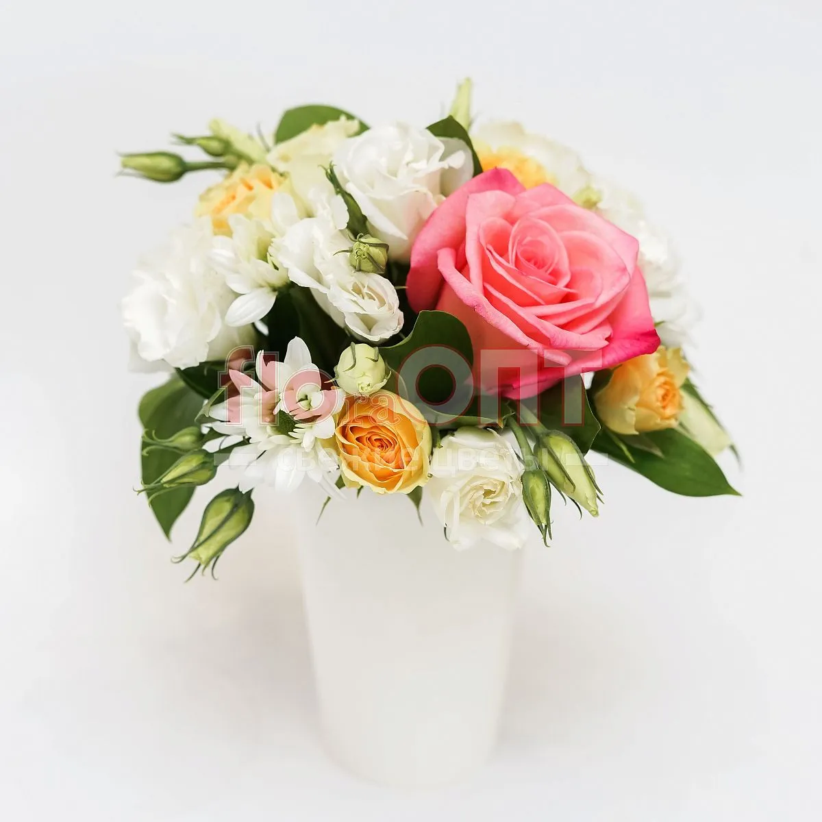 Цветочный стаканчик № 123 с розой и белой эустомой