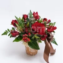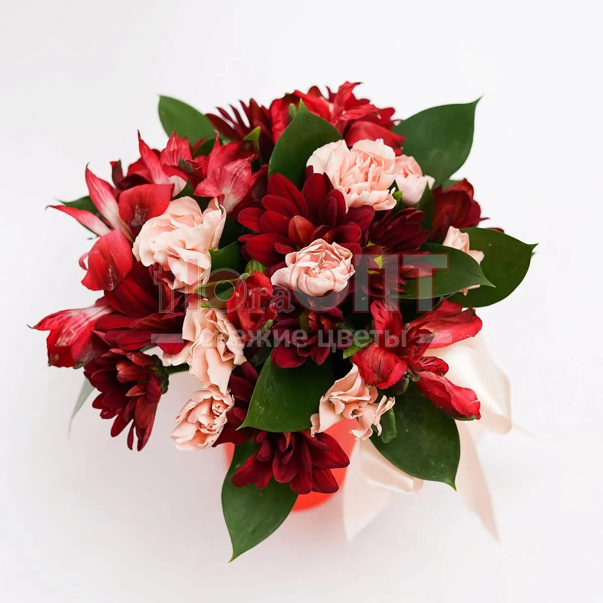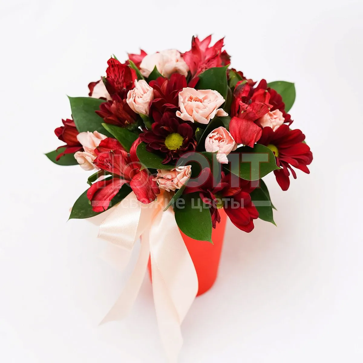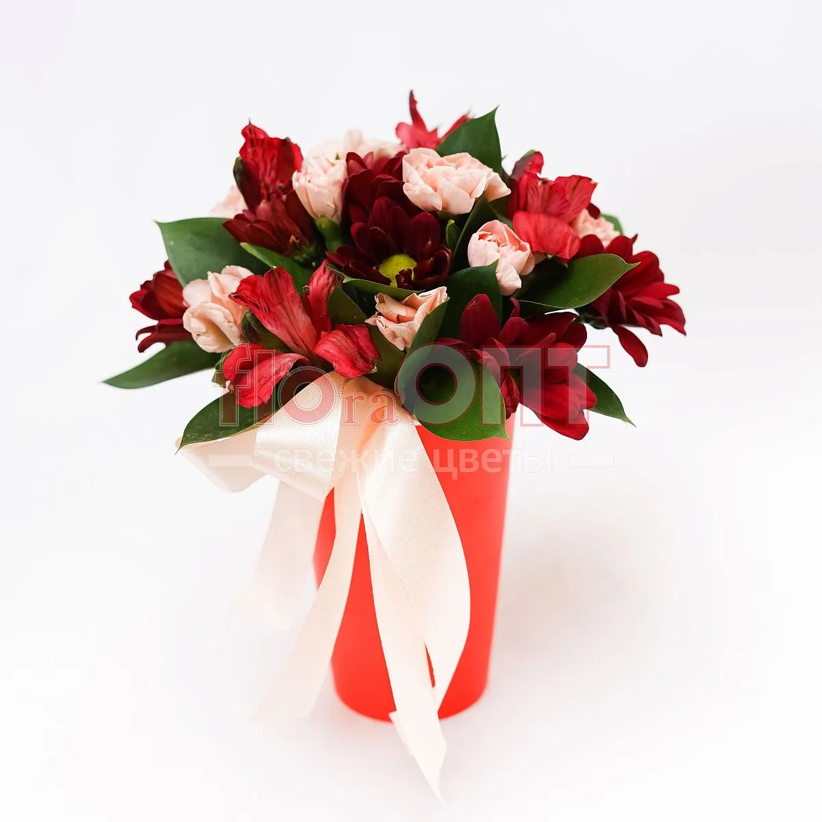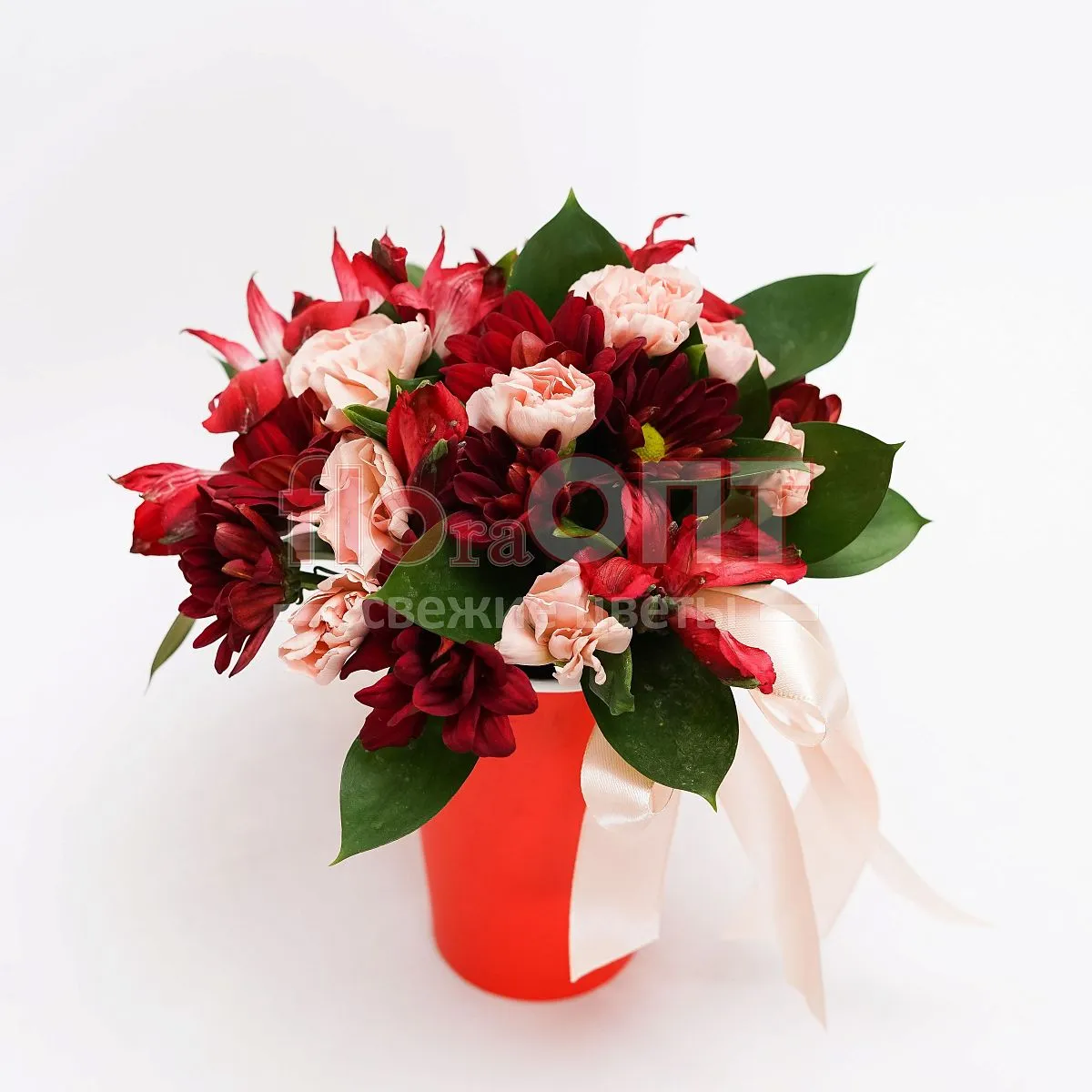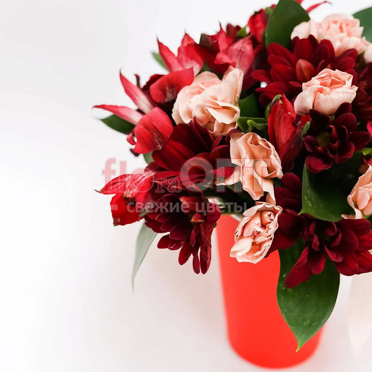 Цветочный стаканчик № 140 с красной альстромерией  — фото 6