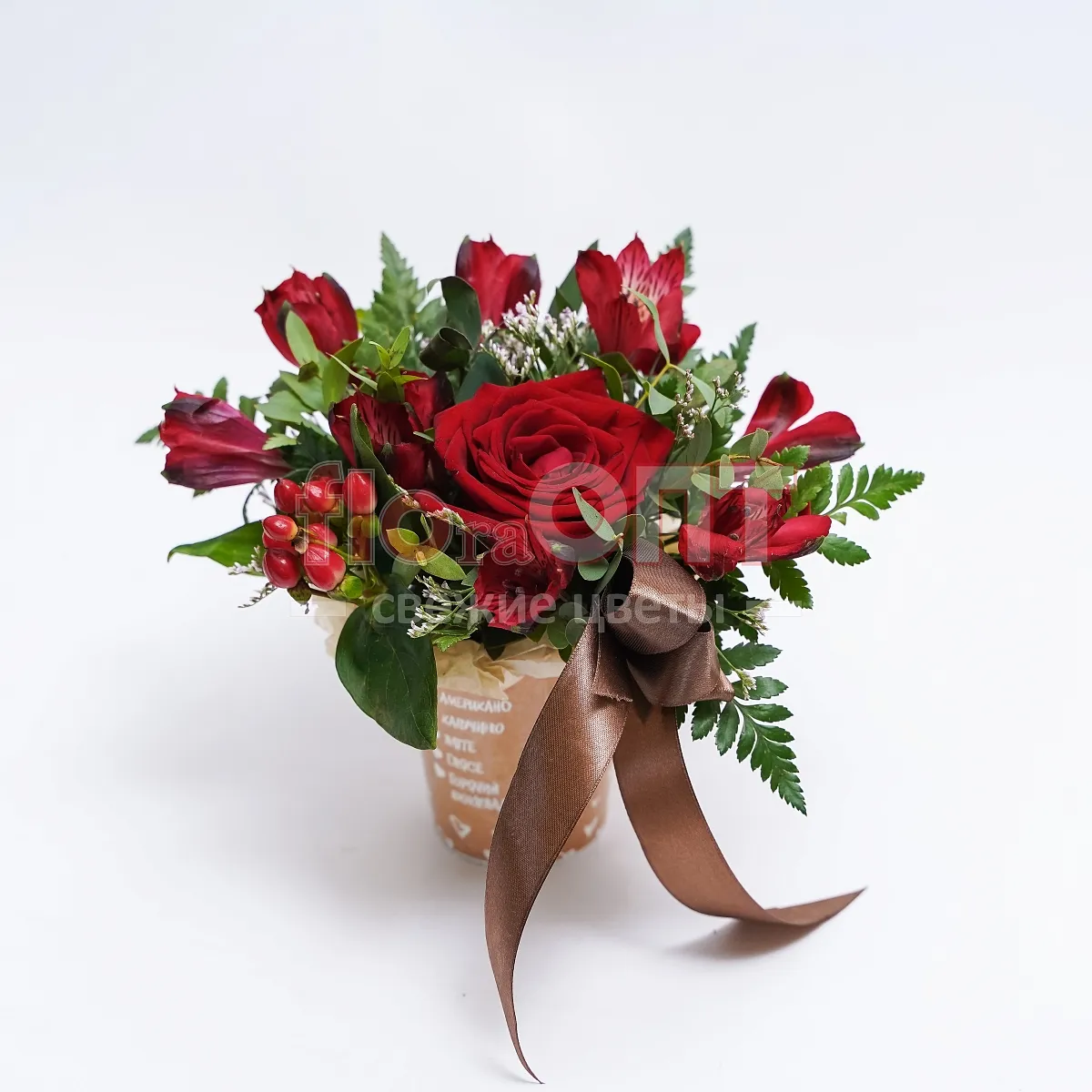 Цветочный стаканчик № 85 с альстромерией  — фото 10
