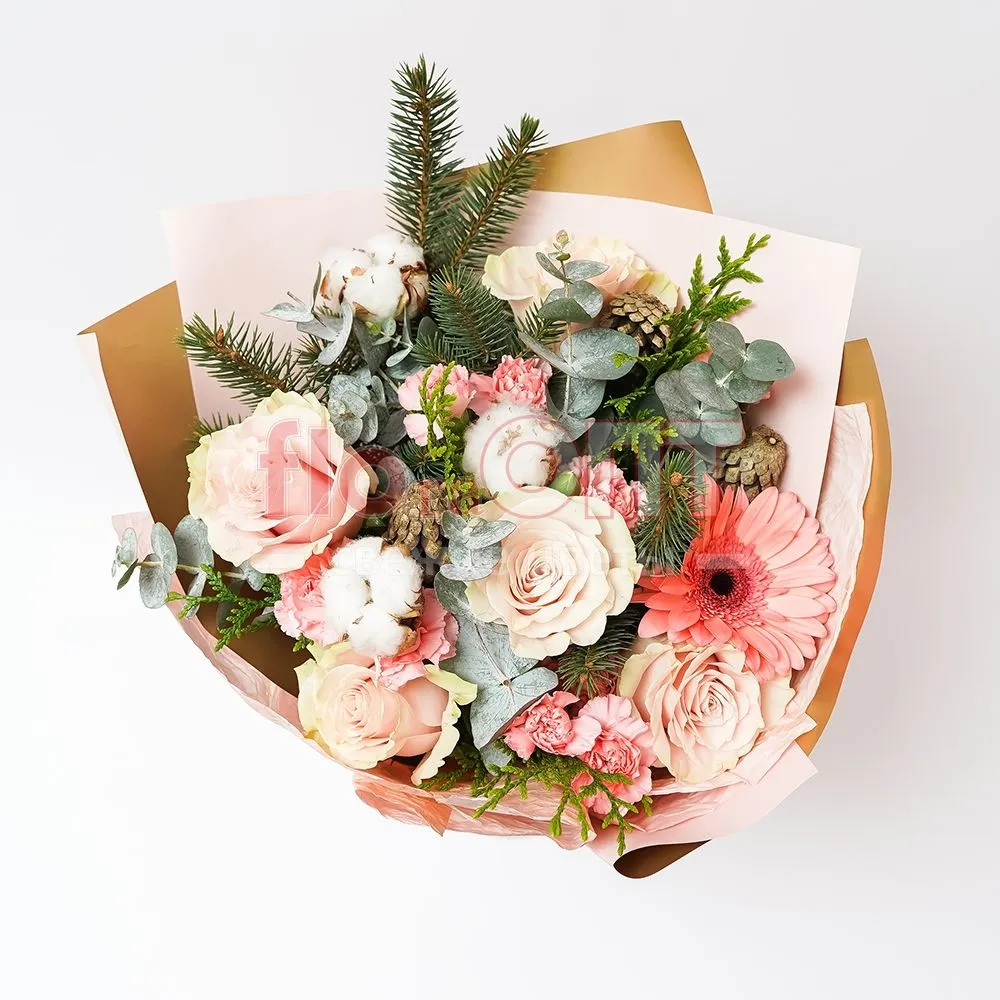 Цветы упакованы так, чтобы им были не страшны механические повреждения, ветра, дожди, снега, холод или жара. В холод или жару дополнительно оборачиваем теплоизолирующим материалом.