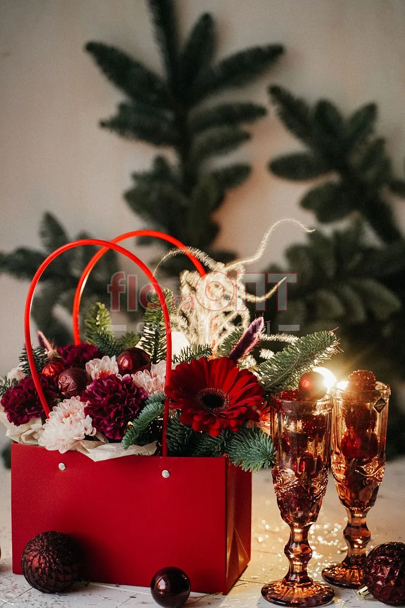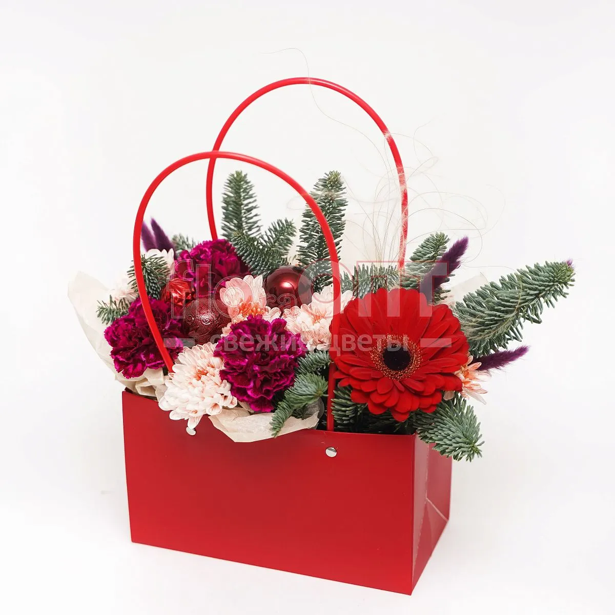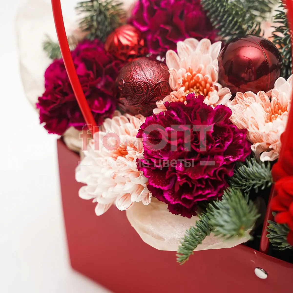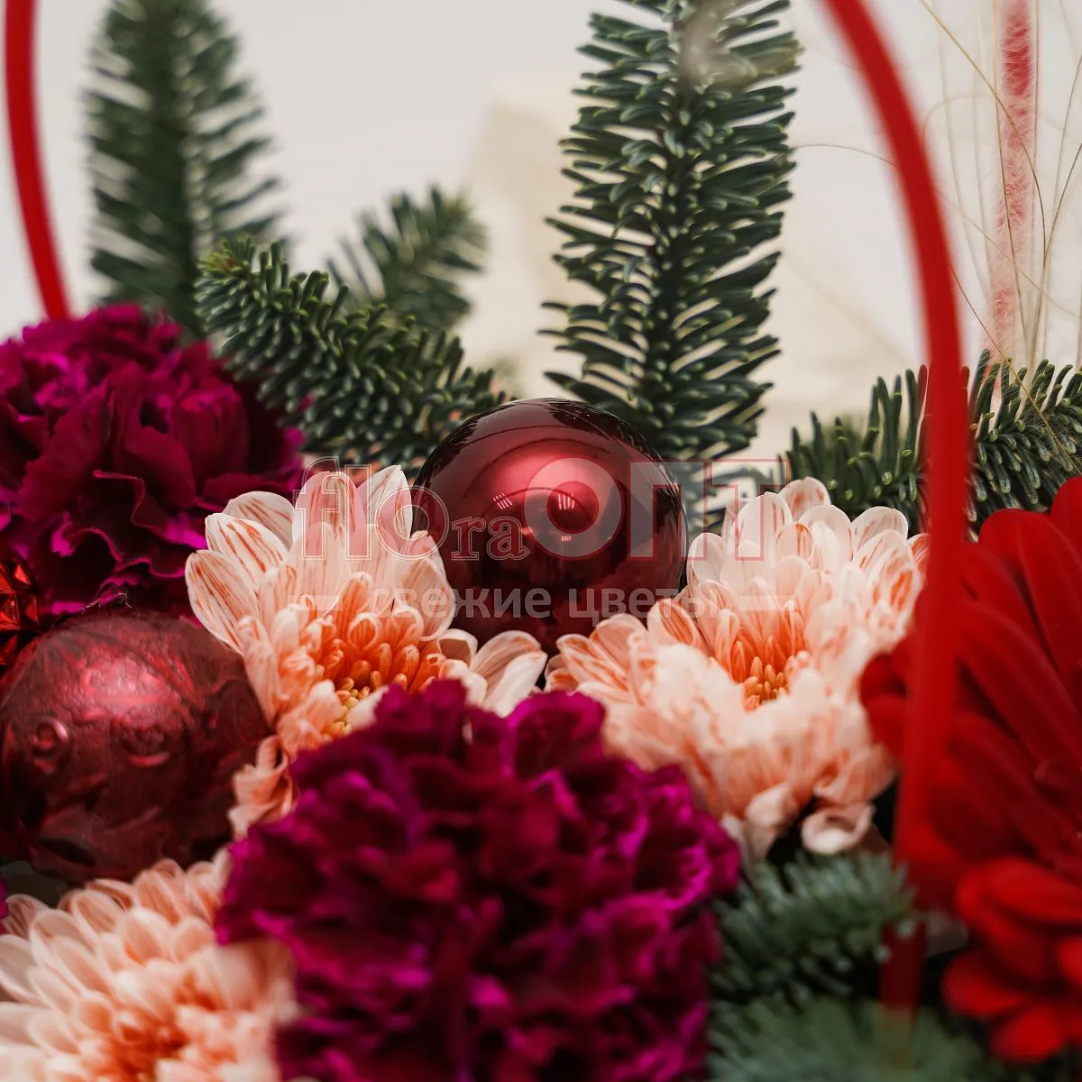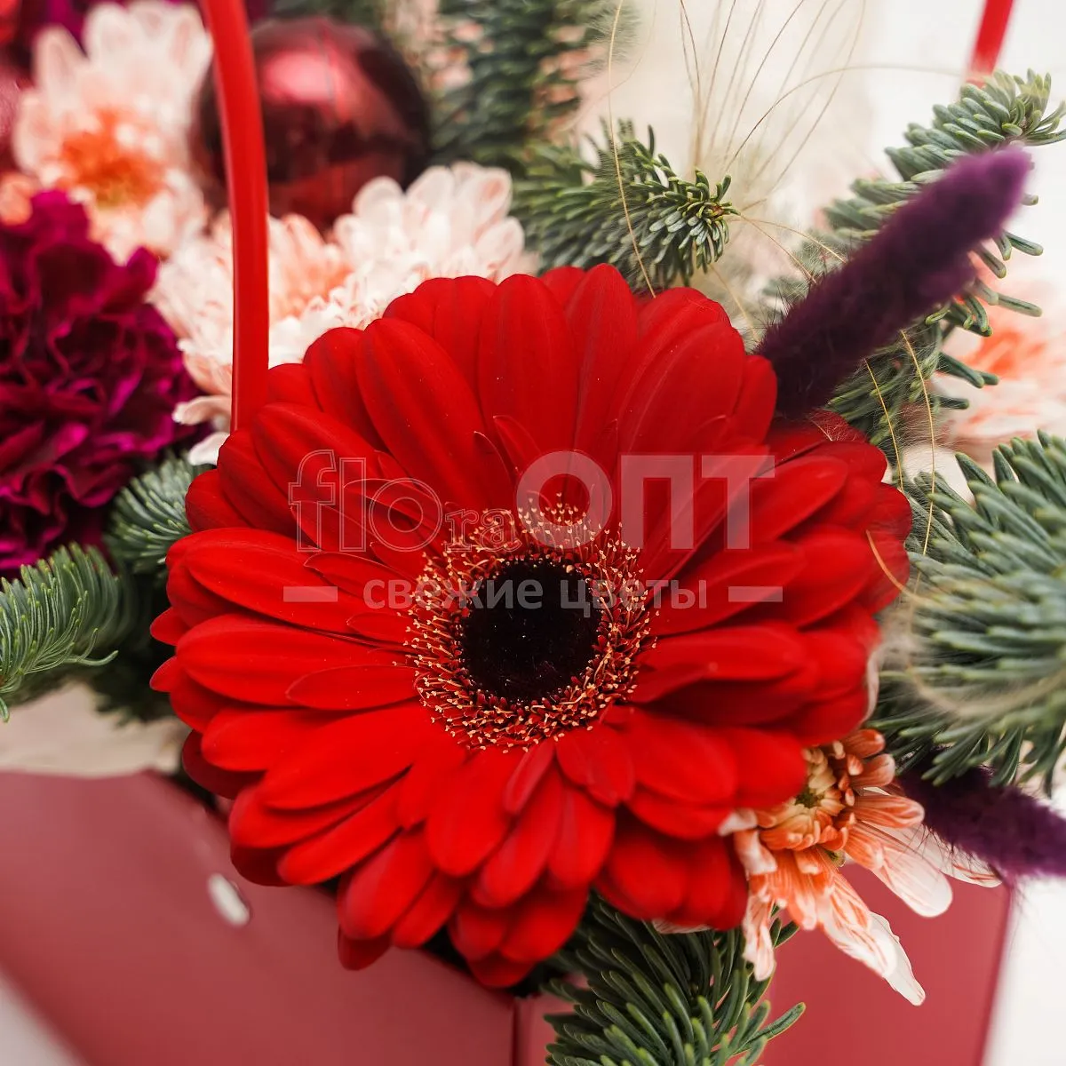 Цветы в составе Гвоздика Одиночная, Гербера, Лапка Ели , Оазис , Хризантема Кустовая, Декор 20 руб, Декор 30 руб, Декор 70 руб, Декор 350 руб, Бумага Тишью, Расходный материал, ✓ Все цветы в наличии
