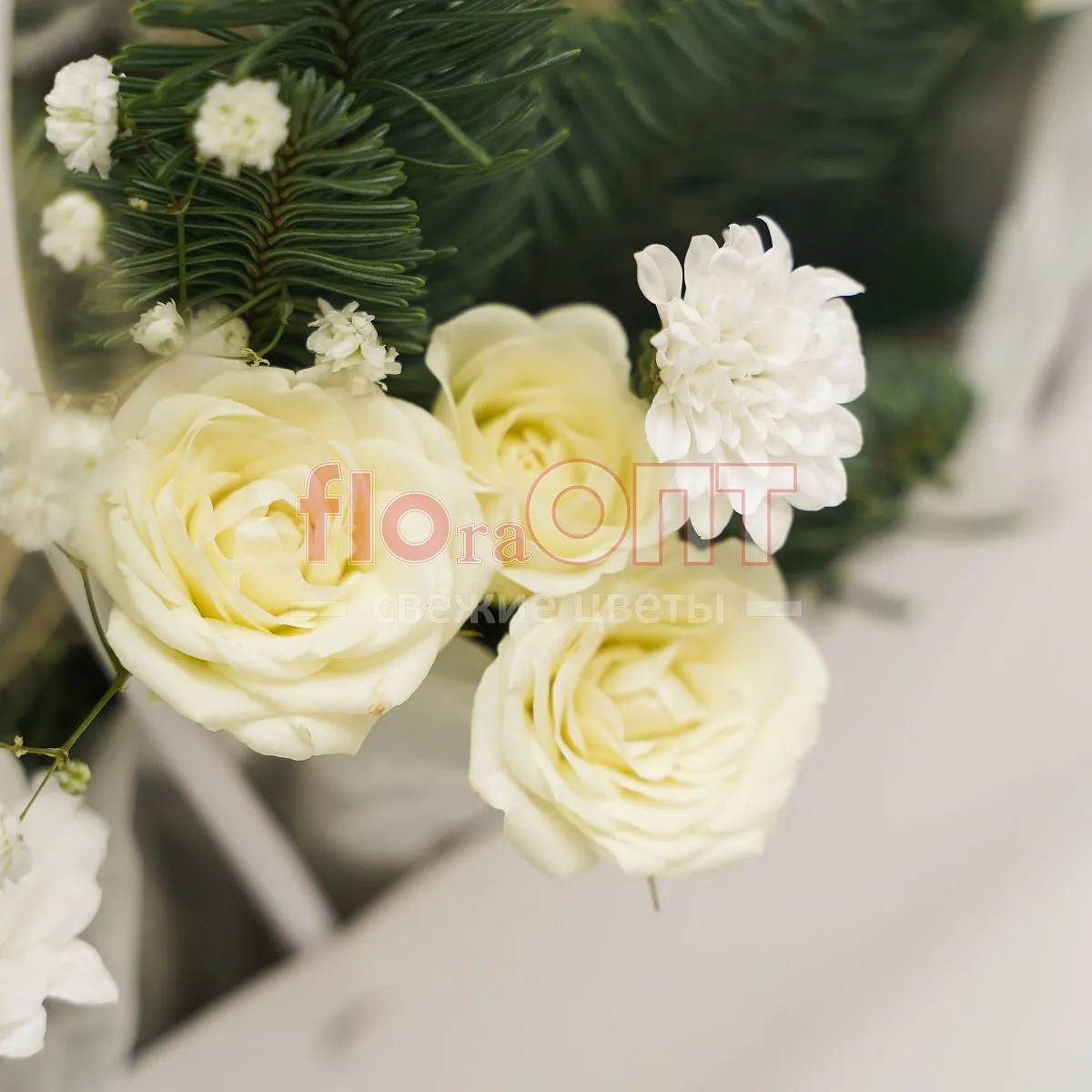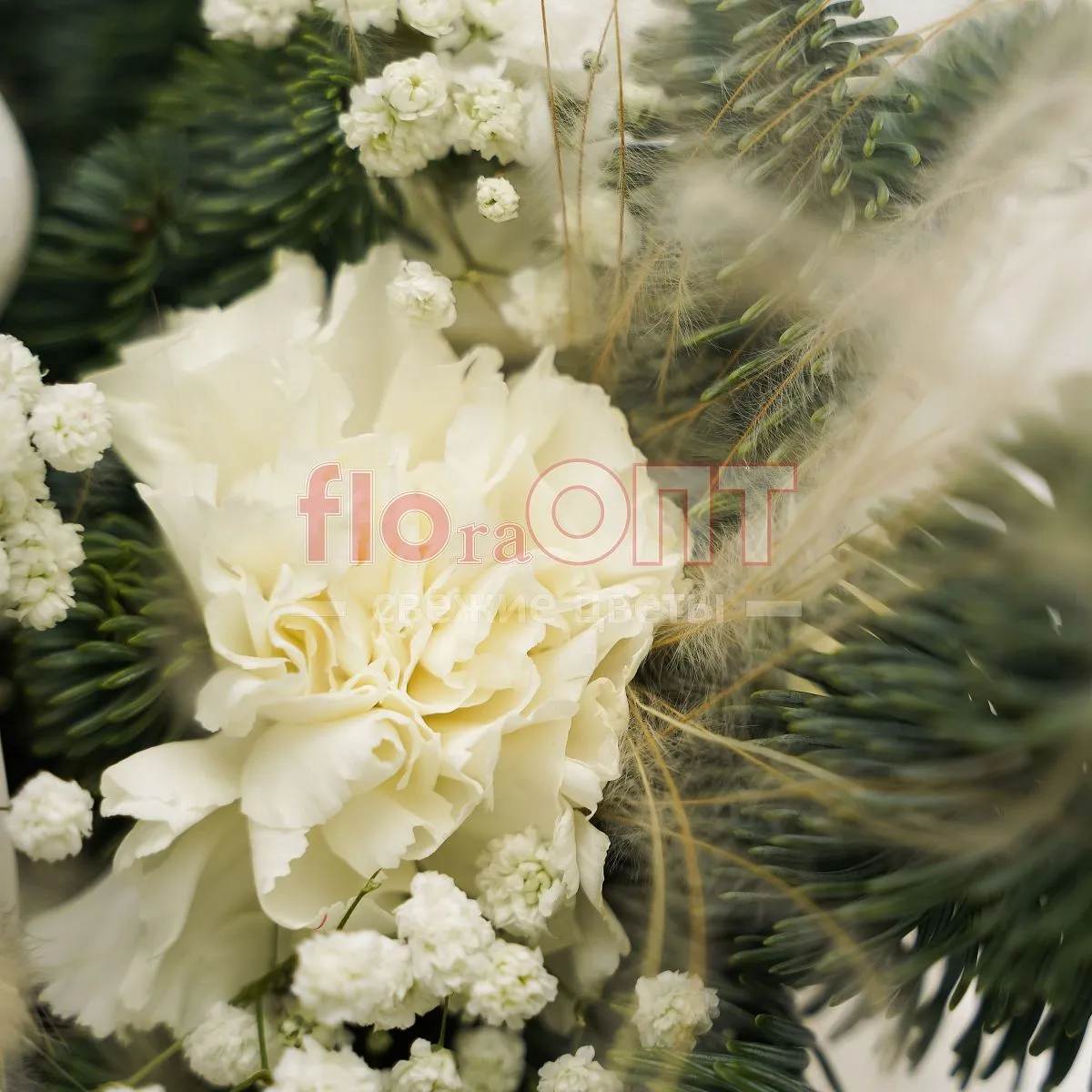 Цветы в составе Гвоздика Одиночная, Гипсофила, Лапка Ели , Оазис , Хризантема Кустовая Сантини, Декор 20 руб, Декор 30 руб, Декор 60 руб, Декор 70 руб, Декор 350 руб, Роза Россия Кустовая 40 см, Бумага Тишью, Расходный материал, ✓ Все цветы в наличии