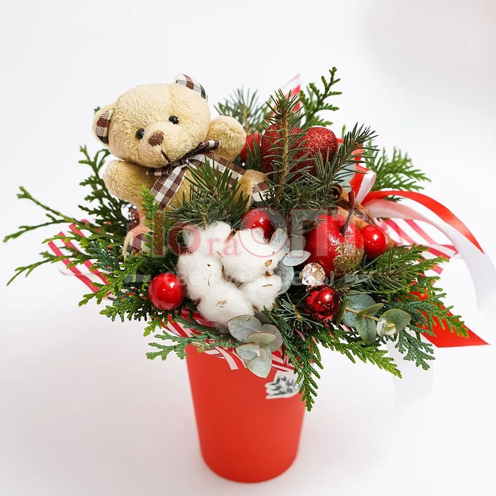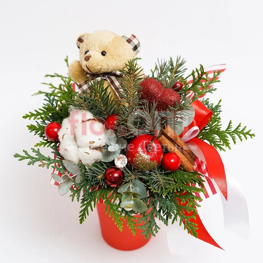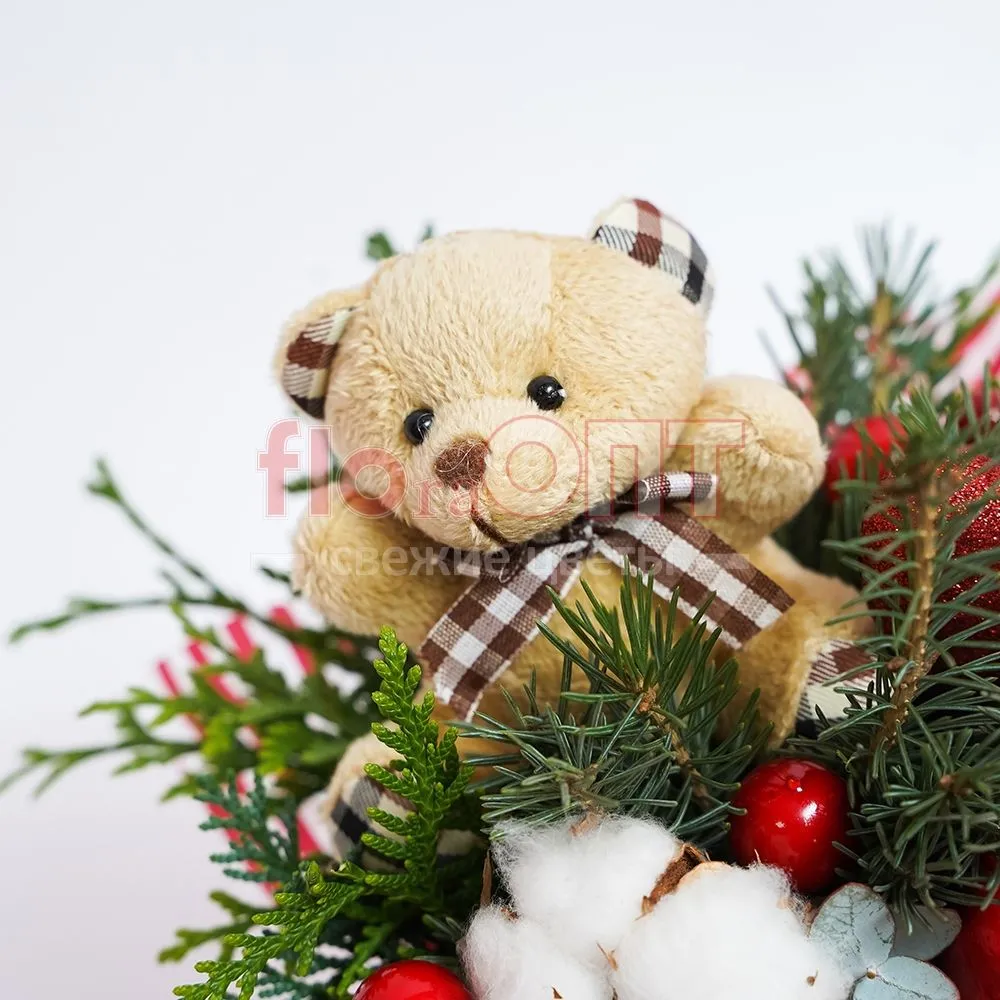 Цветы в составе Лапка Ели , Лента текстиль 80 руб, Оазис , Пленка 250,руб, Хлопок ( 60 ), Декор 20 руб, Декор 30 руб, Декор 50 руб, Декор 70 руб, Мягкая игрушка 150 руб, Туя Зеленая, Расходный материал, ✓ Все цветы в наличии