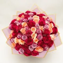 Возможна незначительная замена элементов композиции. Если какого-то цветка или оттенка, как на фотографии, не окажется в салонах, то флорист предложит вам варианты и пришлёт фото на выбор в WhasApp.