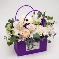 Возможна незначительная замена элементов композиции. Если какого-то цветка или оттенка, как на фотографии, не окажется в салонах, то флорист предложит вам варианты и пришлёт фото на выбор в WhasApp.