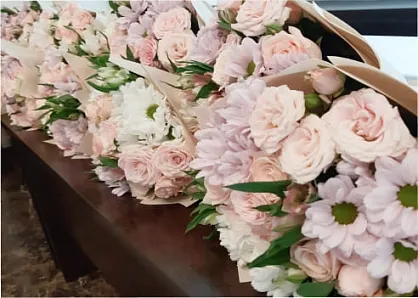 свежие букеты прибудут точно к событию и в безупречном качестве.