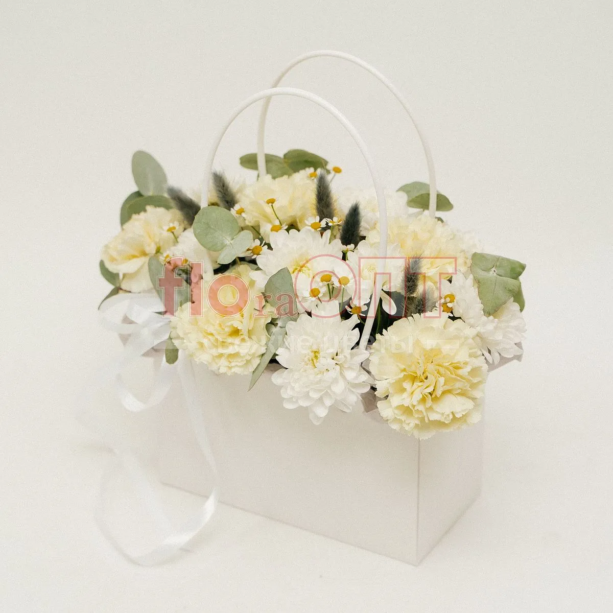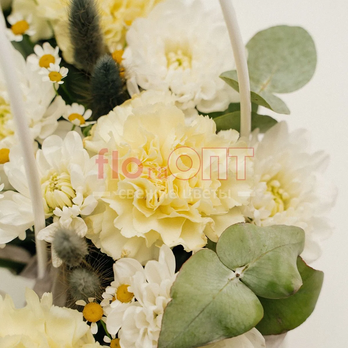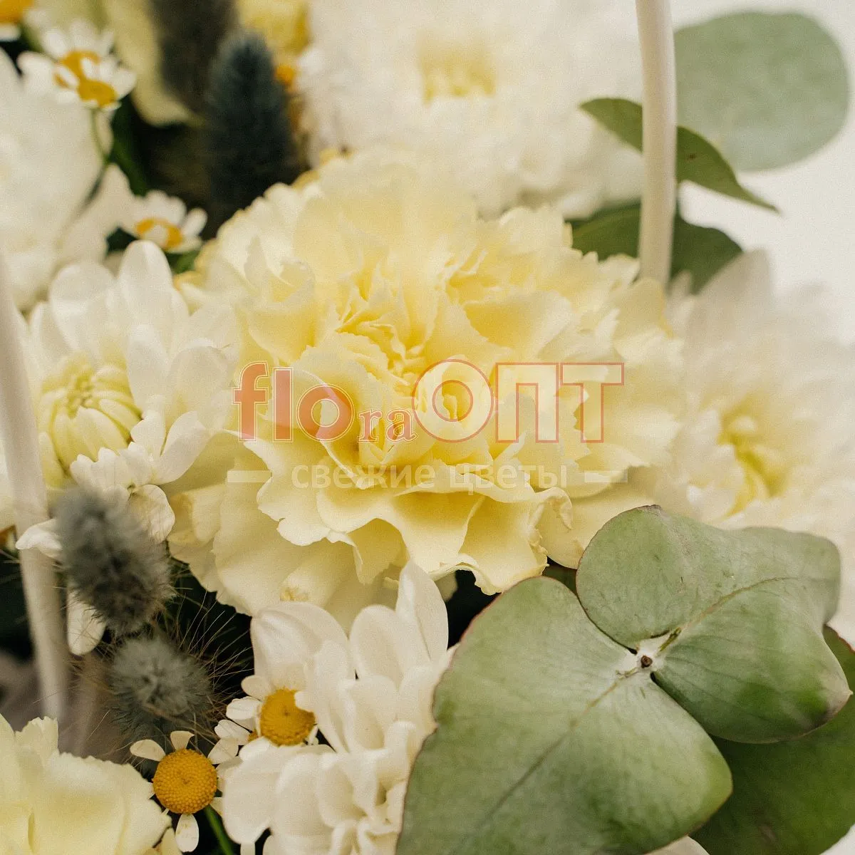 Цветы в составе Лента текстиль 80 руб, Оазис , Эвкалипт Де Люкс, Декор 20 руб, Декор 350 руб, Матрекария, Гвоздика Экстра , Хризантема Кустовая , Бумага Тишью, ✓ Все цветы в наличии