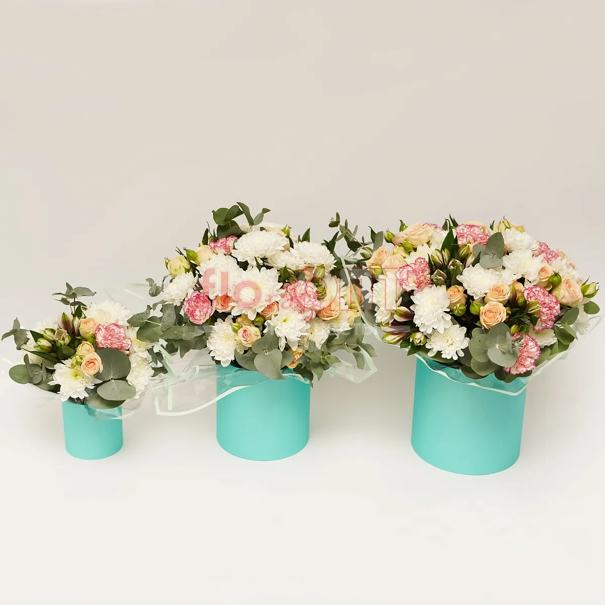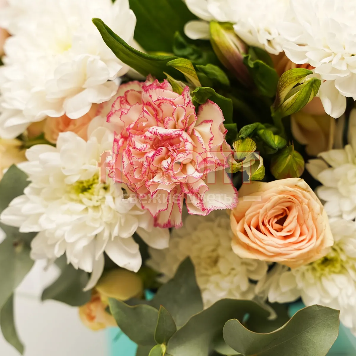 Возможна незначительная замена элементов композиции. Если какого-то цветка или оттенка, как на фотографии, не окажется в салонах, то флорист предложит вам варианты и пришлёт фото на выбор в WhasApp.