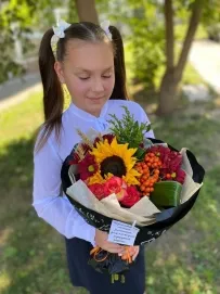 Да конечно, букет является гармоничным дополнением к образу школьника, желательно чтобы букет не мешал ребенку передвигаться, участвовать в различных активностях, быть вовлеченным в праздник.