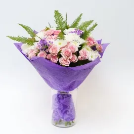 Нежный и непринуждённый букет с гвоздикой и розами в розовых оттенках - 3306₽