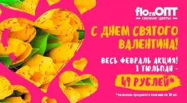 Весь февраль в каждом магазине сети FLOraОПТ – 1 тюльпан за 49 рублей! Чтобы каждый из вас успел купить подарок для своей любимой, все магазины нашей сети с 13 по 14 февраля работаю круглосуточно!