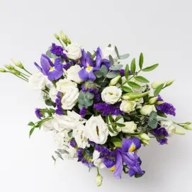 Цветочная композиция должна иметь правильные, строгие очертания, с яркими красками и полным отсутствием спокойных и нежных тонов. Как правило, однотонная, максимум – гармоничное сочетание двух цветов (чаще всего темные оттенки: бордовые, фиолетовые, синие букеты).